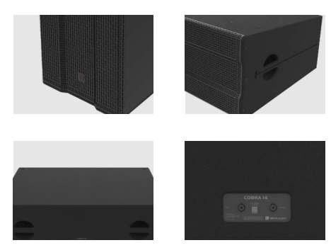 箱体特别采用了全桦木板制作及高级聚脲耐磨漆涂装,具有非常好的防水、防潮、耐晒、耐碰撞的功能,便于长期演出使用。前面板采用刚性金属格栅,背面采用透声防水织物,每个侧板都设计有符合人体工学把手,后部提供了额外的把手 。